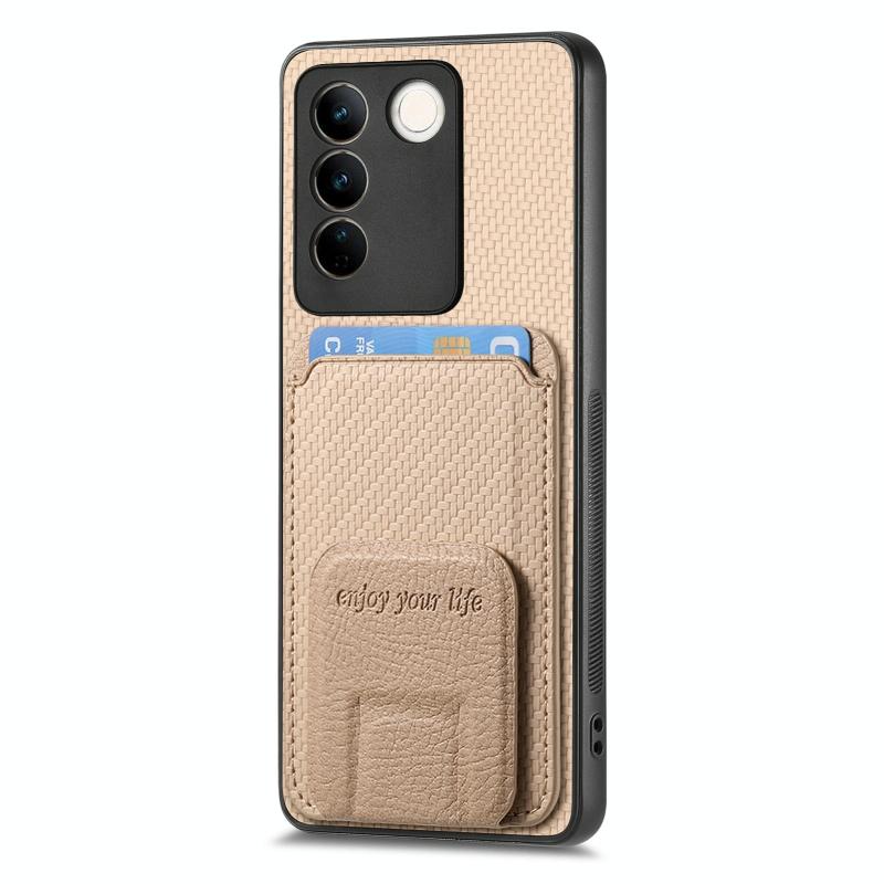 For Vivo Y35M+ Carbon Fiber Card Bag Fold Stand Phone Case(Khaki)