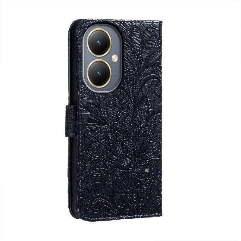Για το vivo Y35M + Lace Flower ανάγλυφο Flip δερμάτινη θήκη τηλεφώνου (σκούρο μπλε)