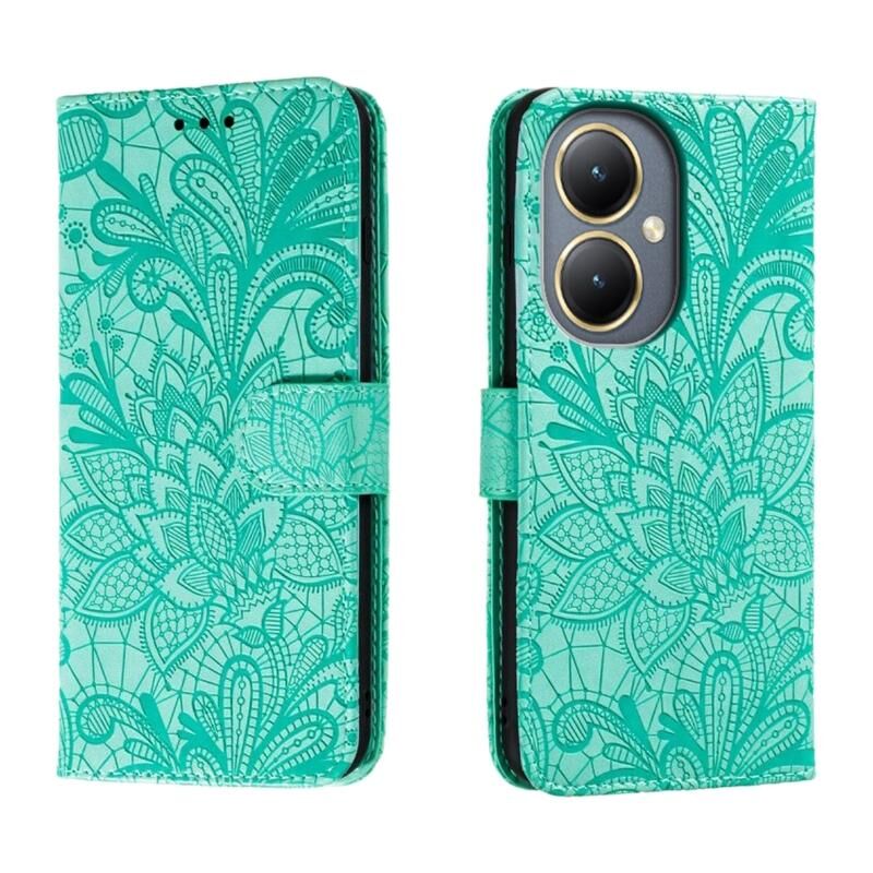 Για το vivo Y35M + Lace Flower ανάγλυφο Flip δερμάτινη θήκη τηλεφώνου (πράσινο)