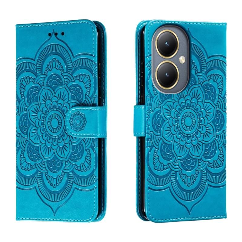 Για vivo Y35M + Sun Mandala ανάγλυφο μοτίβο τηλέφωνο δερμάτινη θήκη (Μπλε)