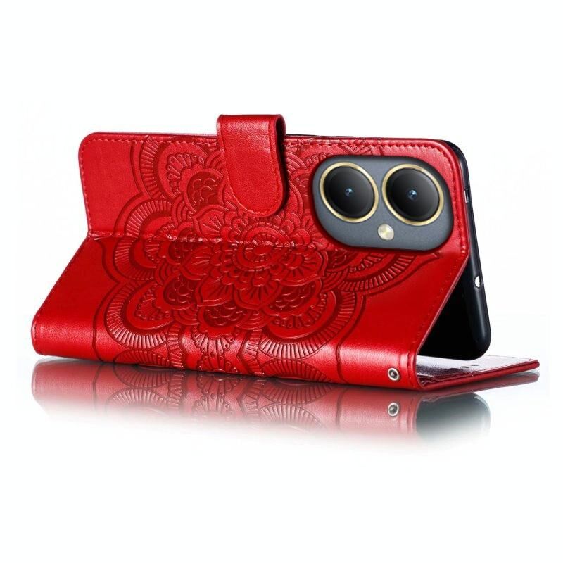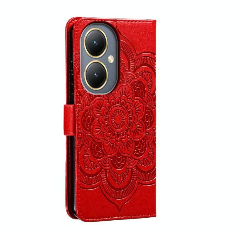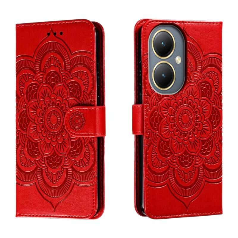 Για vivo Y35M + Sun Mandala ανάγλυφο μοτίβο τηλέφωνο δερμάτινη θήκη (κόκκινο)