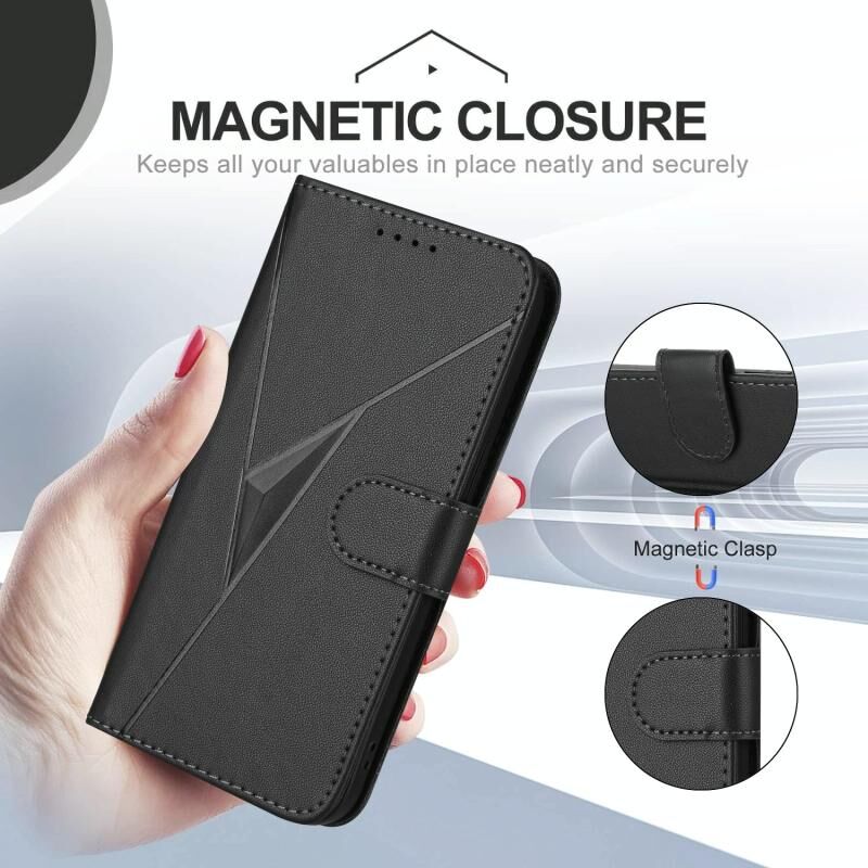 Για vivo Y35m + Τρίγωνο μοτίβο αγκράφα κούμπωμα δερμάτινη θήκη τηλεφώνου (μαύρο)