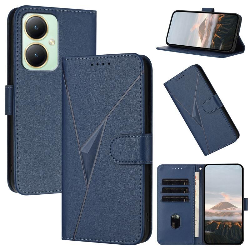 Για vivo Y35m + Τρίγωνο μοτίβο αγκράφα κούμπωμα δερμάτινη θήκη τηλεφώνου (Royal Blue)