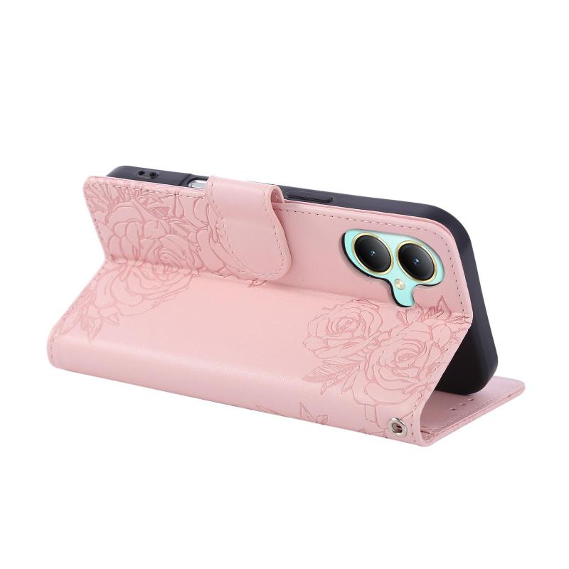 For vivo Y35M+ / Y35+ / Y27 4G Rose Flower Embossed 3-Card Slots Leather Phone Case(Pink)