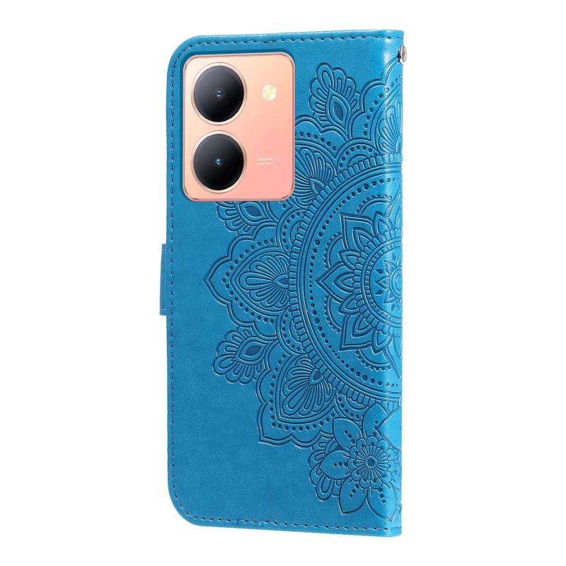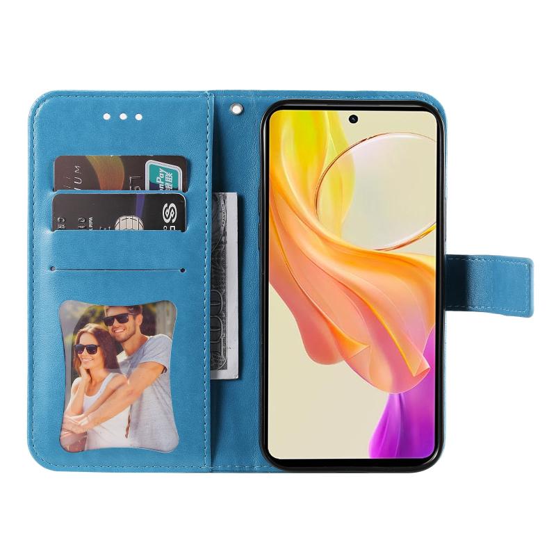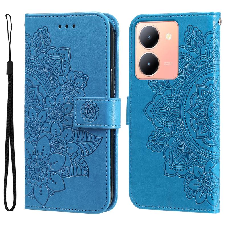 Θήκη τηλεφώνου από δέρμα με ανάγλυφα ξένα λουλούδια επτά πετάλων για vivo Y36 4G / 5G (Ανοιχτό Μωβ)