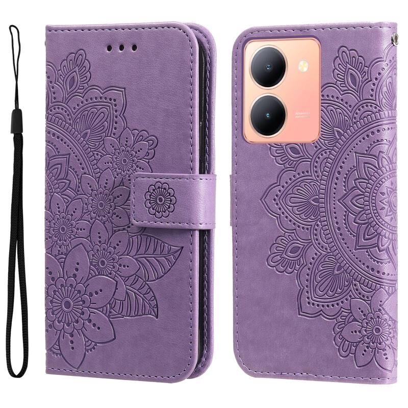 Θήκη τηλεφώνου από δέρμα με ανάγλυφα ξένα λουλούδια επτά πετάλων για vivo Y36 4G / 5G (Ανοιχτό Μωβ)
