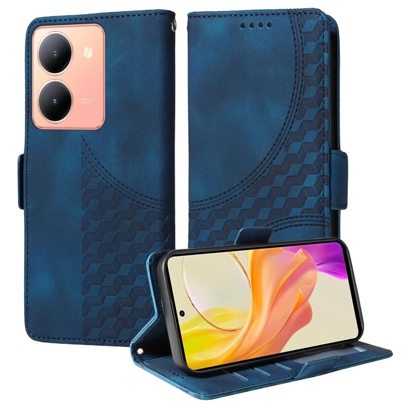 Θήκη τηλεφώνου από δέρμα με ανάγλυφο ρόμβο και αστρικό σχέδιο για vivo Y36 4G / 5G (Πράσινο)