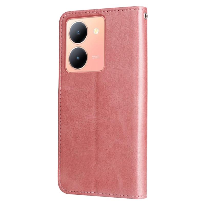 Θήκη τηλεφώνου από δέρμα με υφή μοσχαριού και φερμουάρ για vivo Y36 4G / 5G (Χρυσό ροζ)
