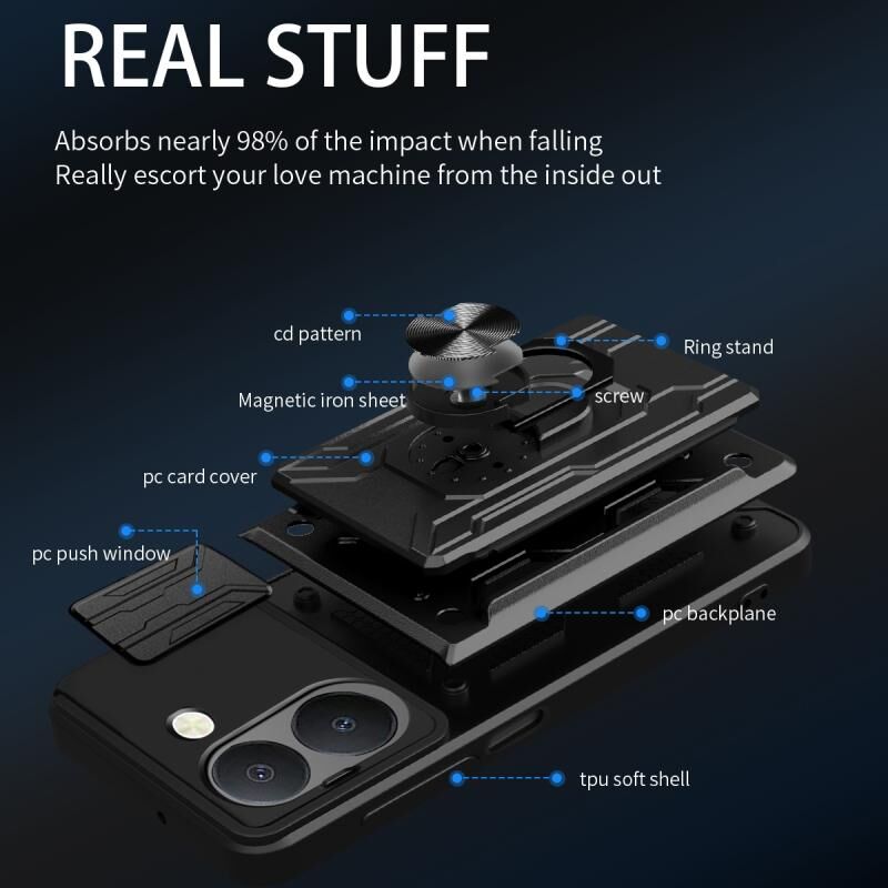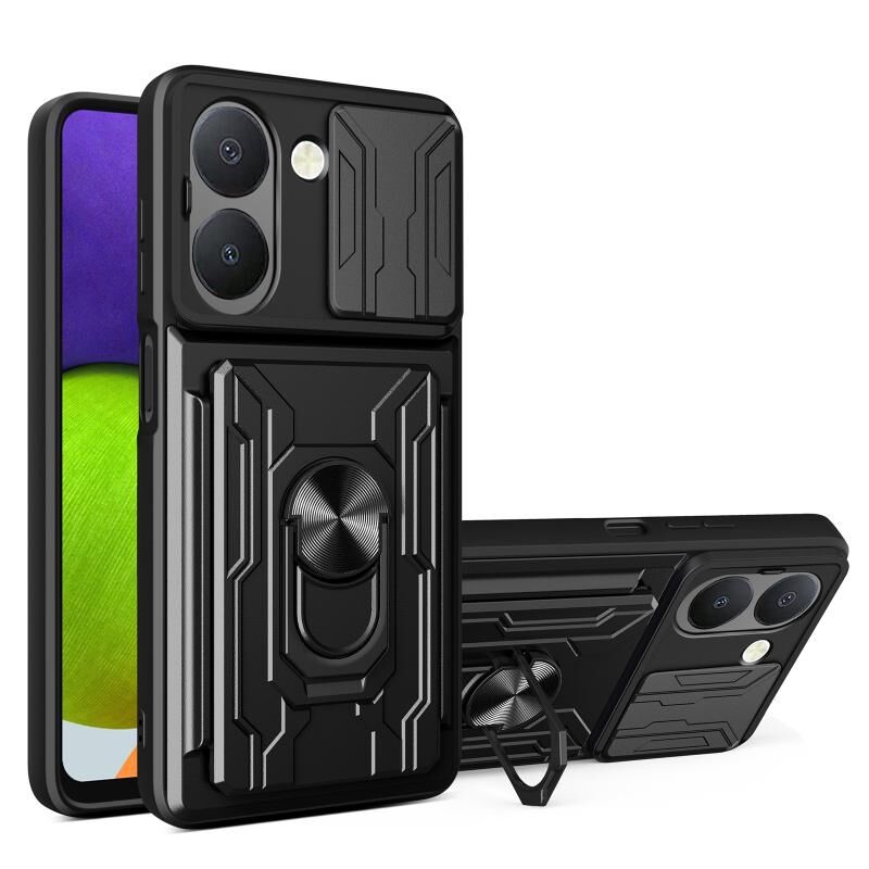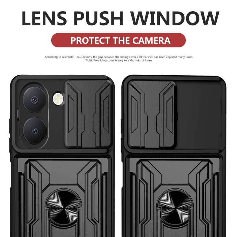 Για το vivo Y36 5G / 4G Παγκόσμια συρόμενη Camshield TPU + PC υπόθεση τηλεφώνου με υποδοχή κάρτας (Μαύρο)