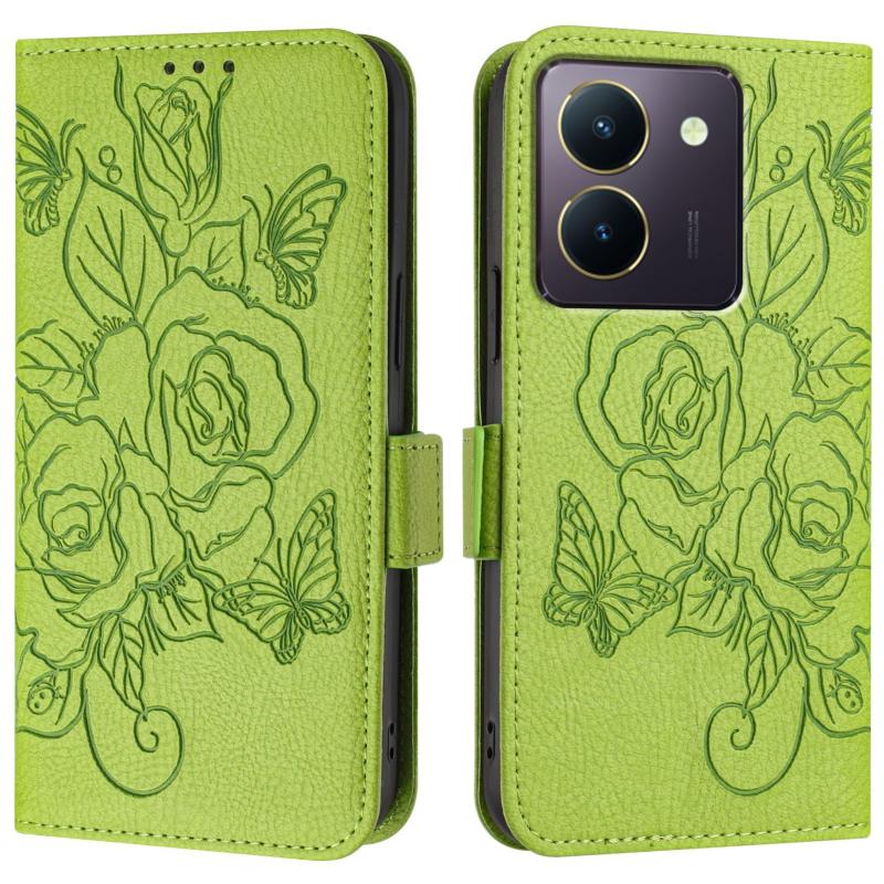 For vivo Y36 5G / 4G / Y27s 4G Global Embossed Rose RFID Anti-theft Leather Phone Case(Green)