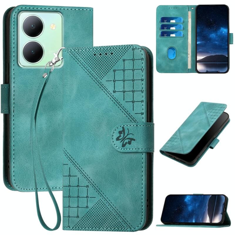 Θήκη τηλεφώνου δερμάτινη με ανάγλυφο σχέδιο πεταλούδας και κορδόνι για vivo Y36 5G (Σκούρο Μπλε)