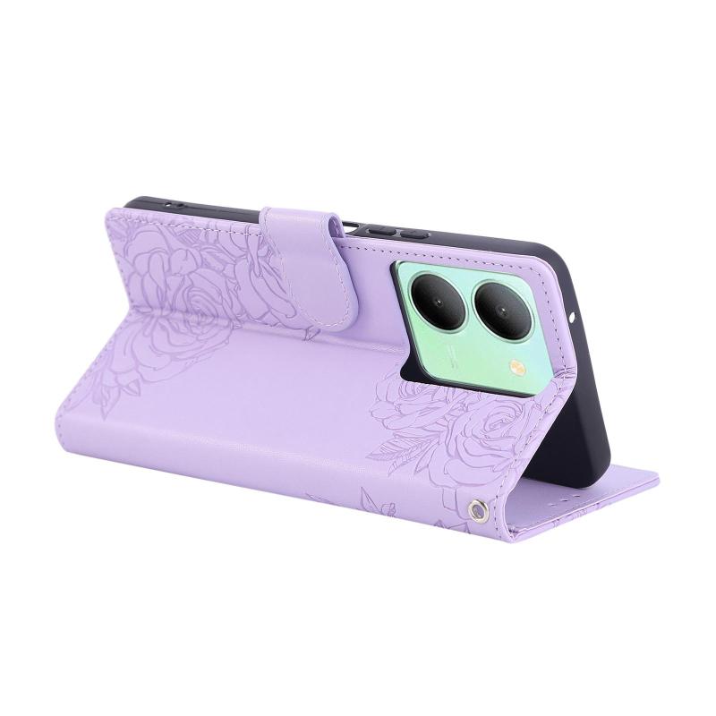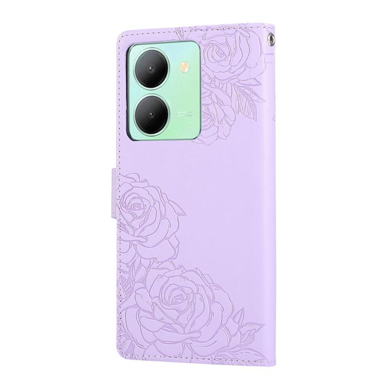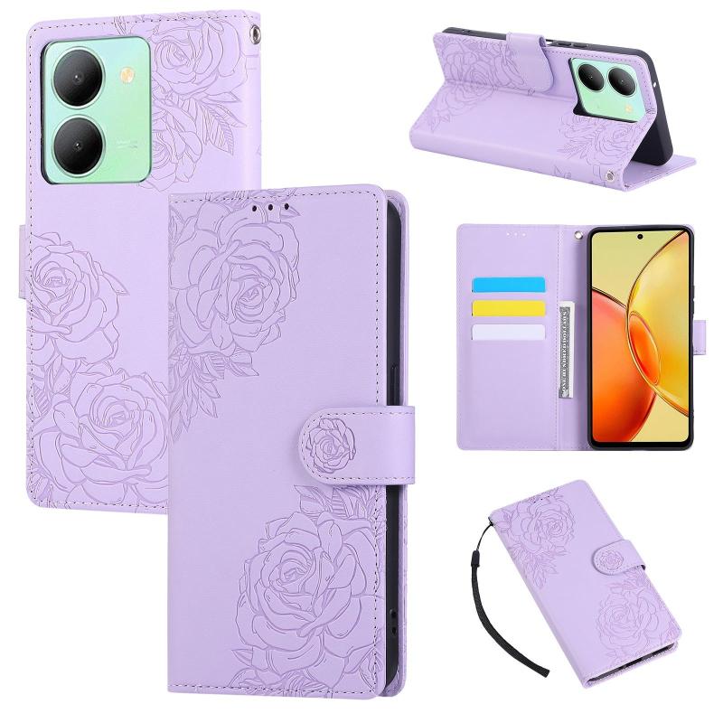 For vivo Y36 5G Global Rose Flower Embossed 3-Card Slots Leather Phone Case(Purple)