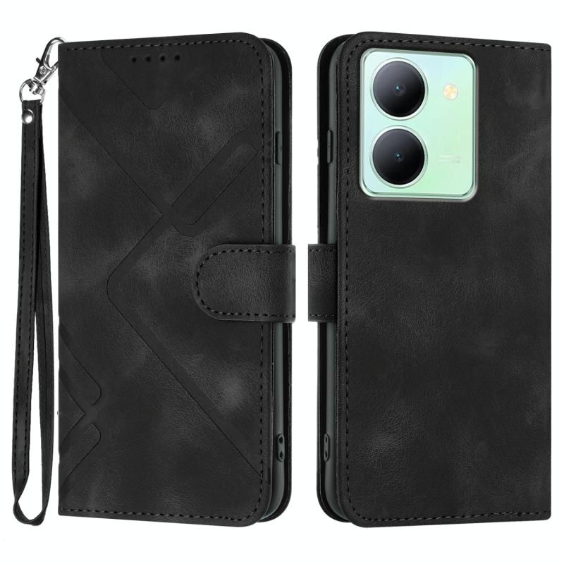 For vivo Y36 5G Global/Y36 4G Global Line Pattern Skin Feel Leather Phone Case(Black)