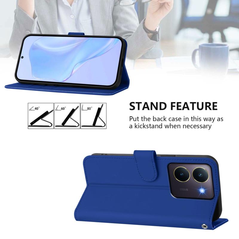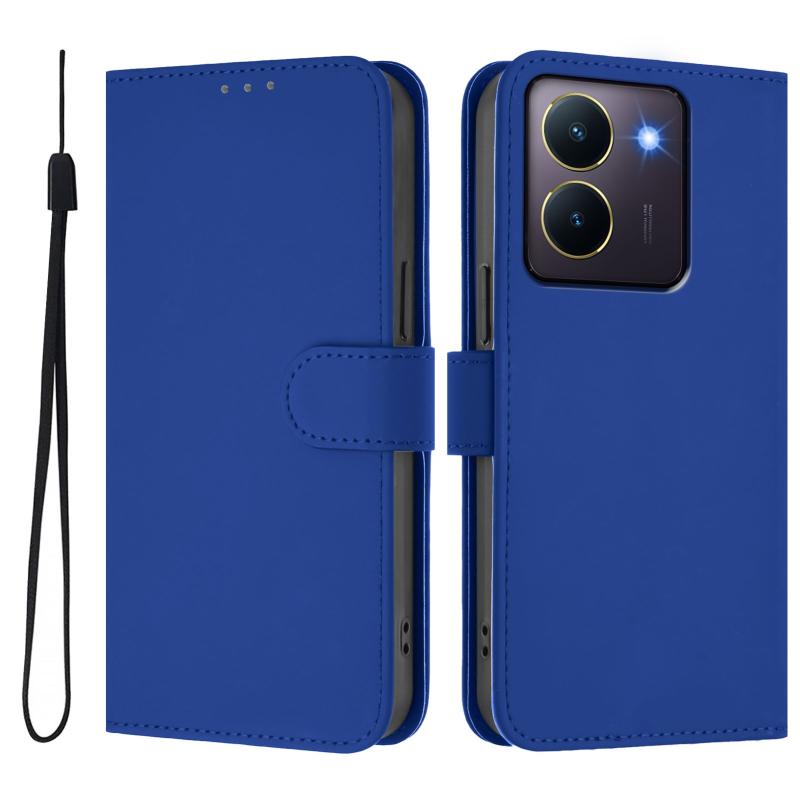 Θήκη τηλεφώνου από δέρμα με συμπαγή χρώματα και κορδόνι για vivo Y36 5G Global / Y36 4G Global (Καφέ)