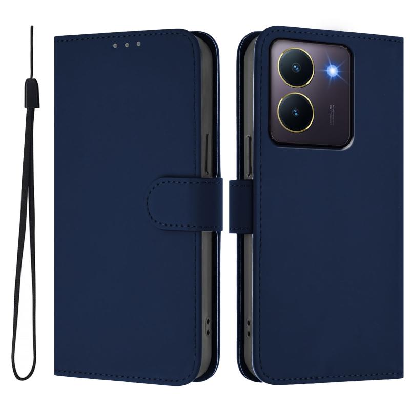 Θήκη τηλεφώνου από δέρμα με συμπαγή χρώματα και κορδόνι για vivo Y36 5G Global / Y36 4G Global (Καφέ)