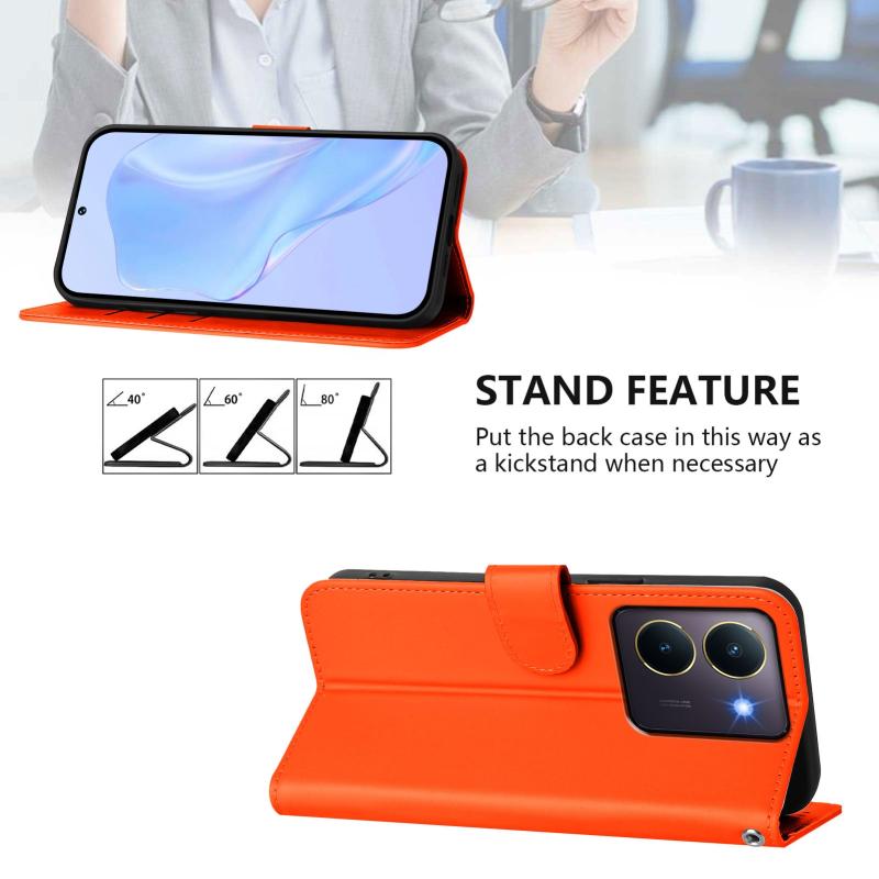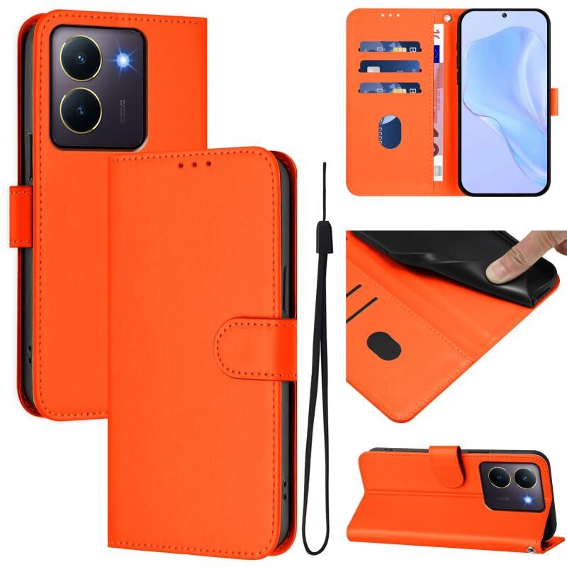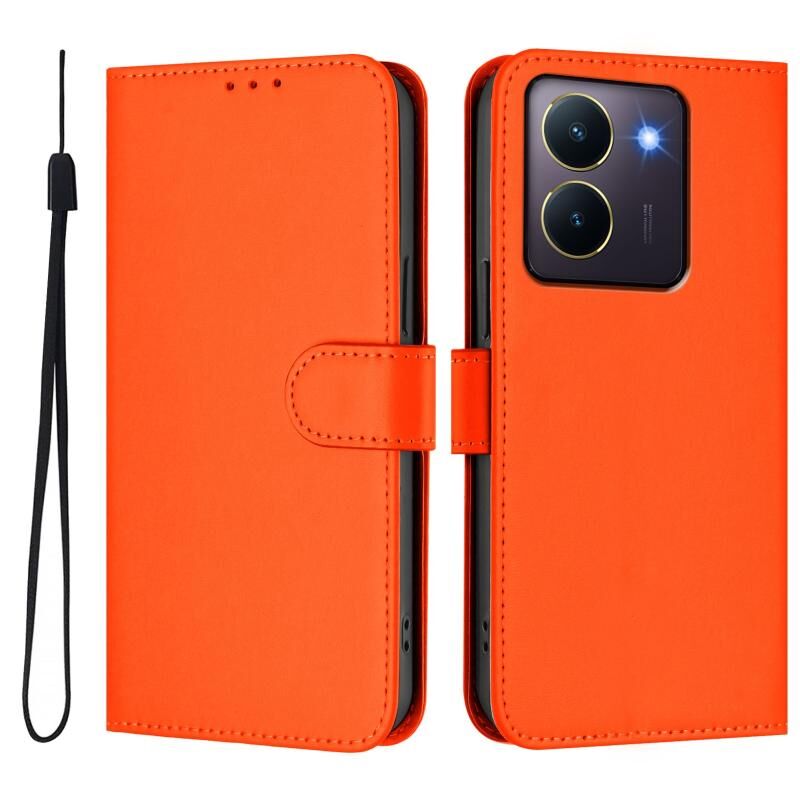 Θήκη τηλεφώνου από δέρμα με συμπαγή χρώματα και κορδόνι για vivo Y36 5G Global / Y36 4G Global (Καφέ)
