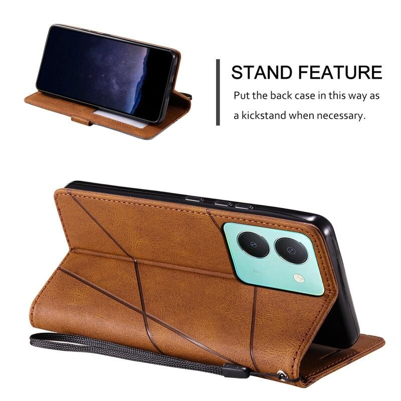 Για το vivo Y36 δέρμα αίσθηση Splicing δέρμα τηλέφωνο υπόθεση (καφέ)