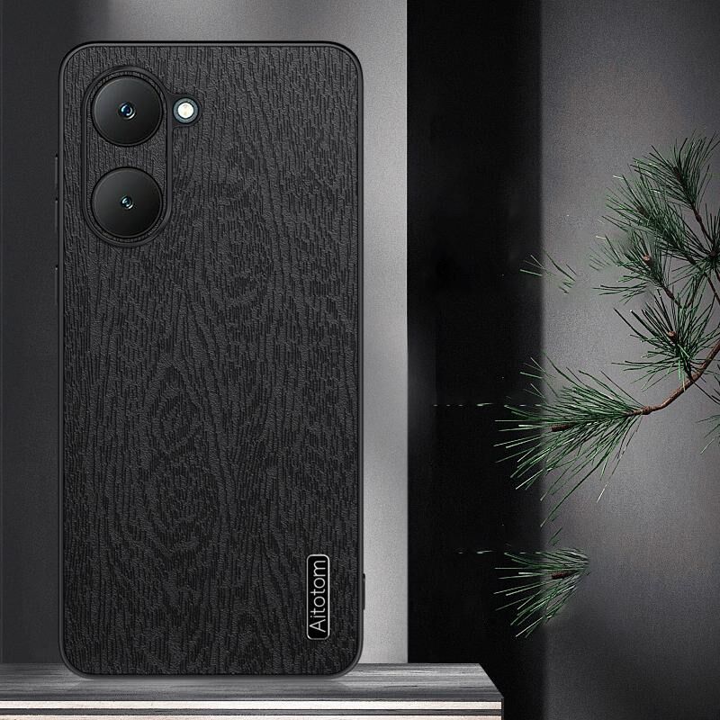 Για το vivo Y36T Tree Bark δερμάτινη θήκη τηλεφώνου με αντικραδασμική προστασία (Μαύρο)