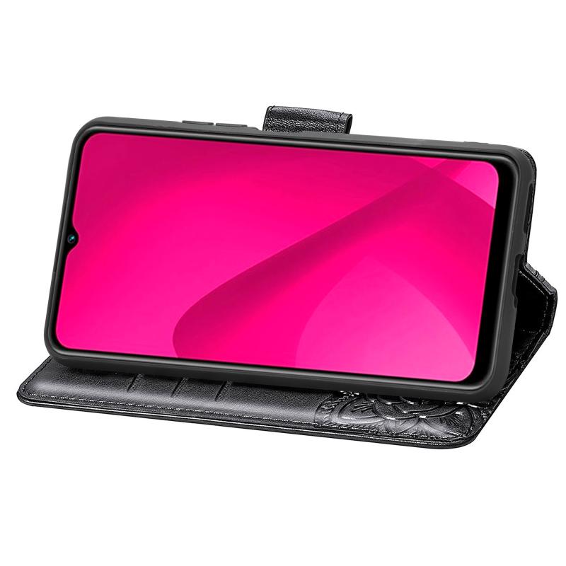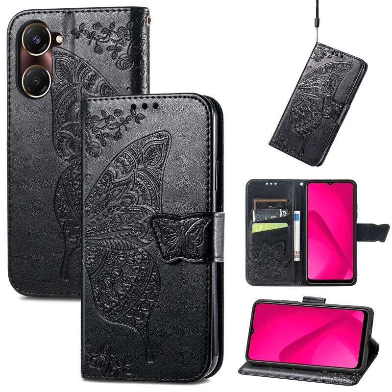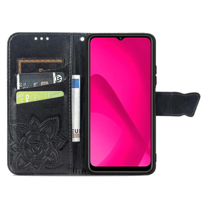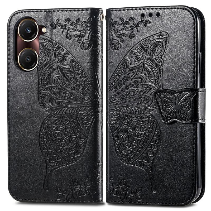 Θήκη δερμάτινη με ανάγλυφο σχέδιο πεταλούδας και λουλουδιών για vivo Y37 (Μαύρο)