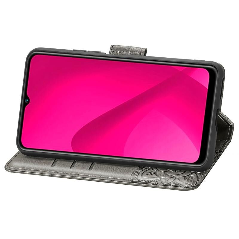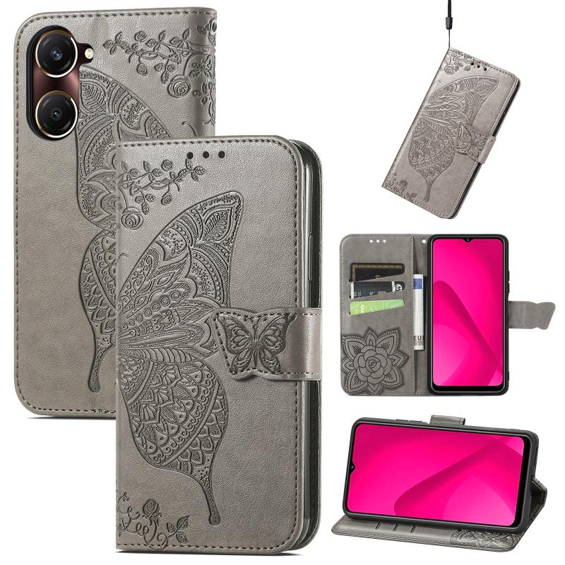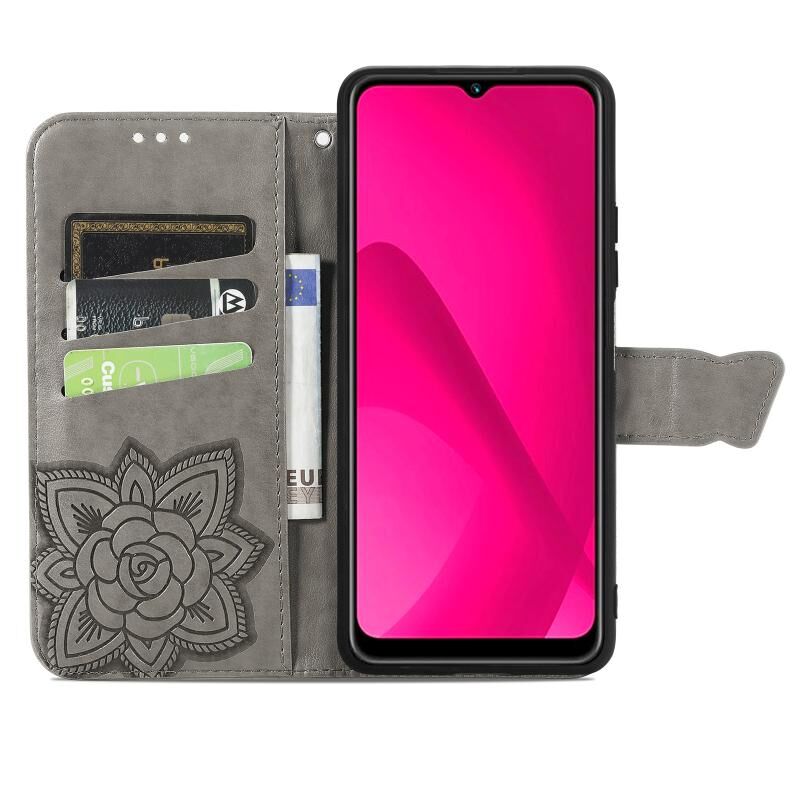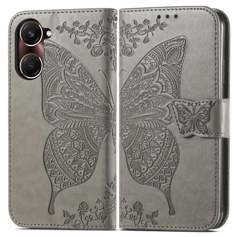 Θήκη δερμάτινη με ανάγλυφο σχέδιο πεταλούδας και λουλουδιών για vivo Y37 (Γκρι)