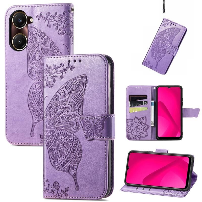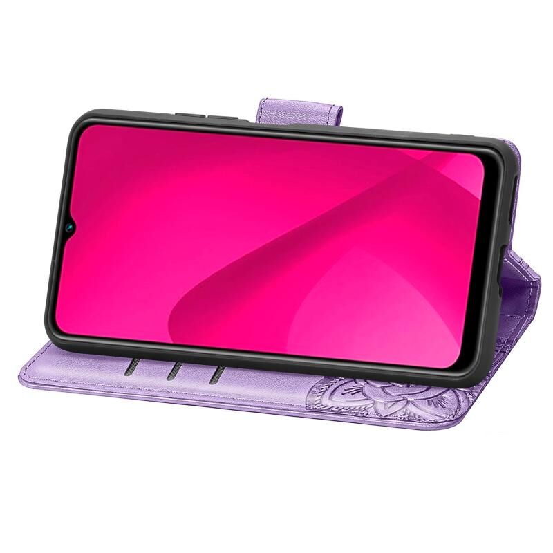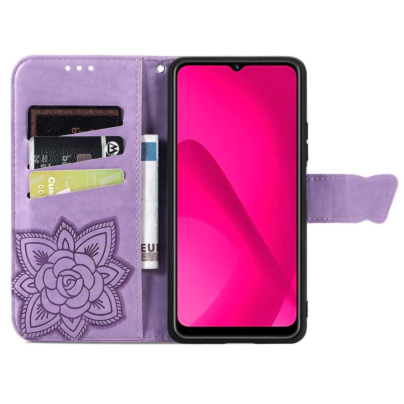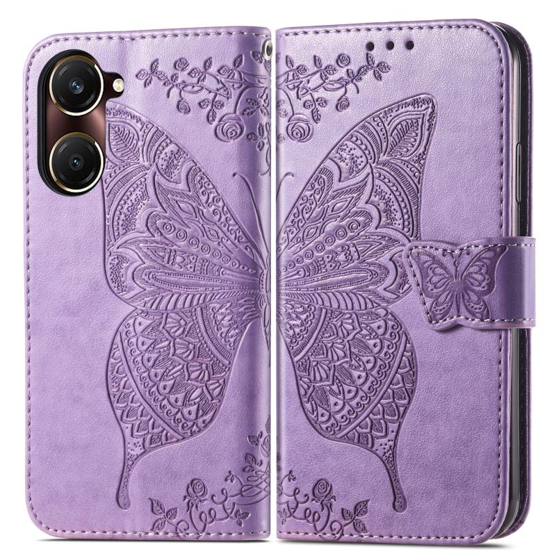 Θήκη δερμάτινη με ανάγλυφο σχέδιο πεταλούδας και λουλουδιών για vivo Y37 (Λεβάντα)