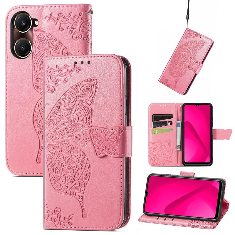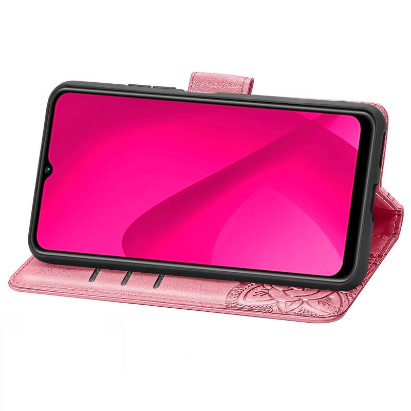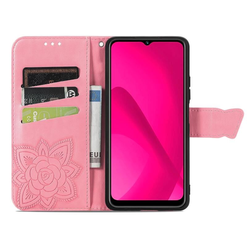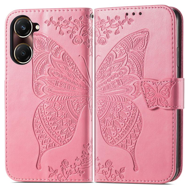Θήκη δερμάτινη με ανάγλυφο σχέδιο πεταλούδας και λουλουδιών για vivo Y37 (Ροζ)