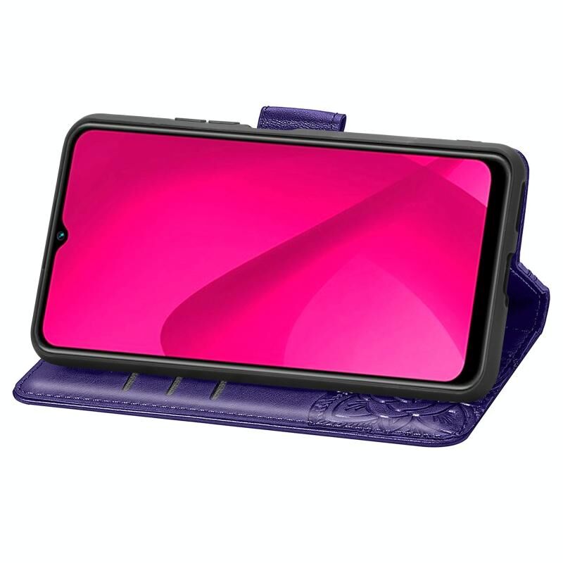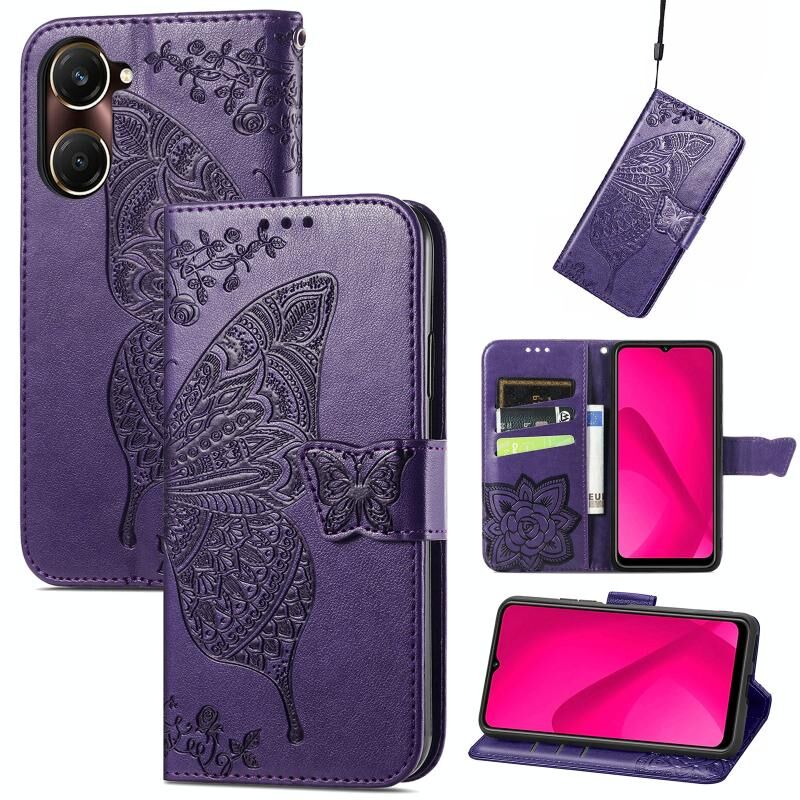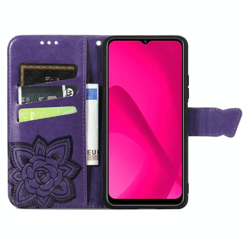 Θήκη δερμάτινη με ανάγλυφο σχέδιο πεταλούδας και λουλουδιών για vivo Y37 (Μωβ)