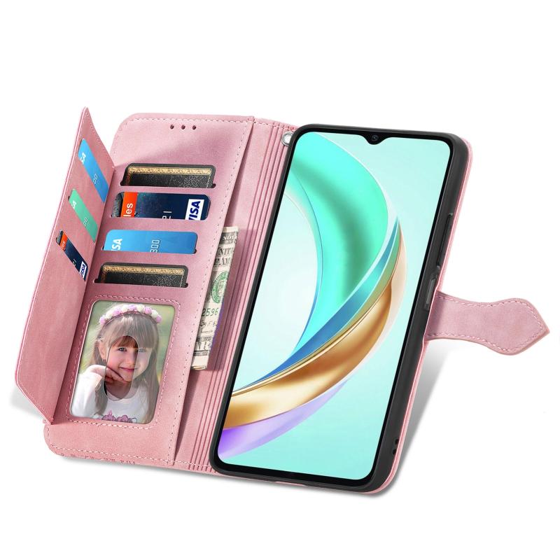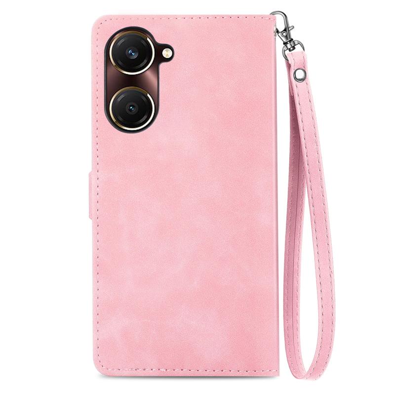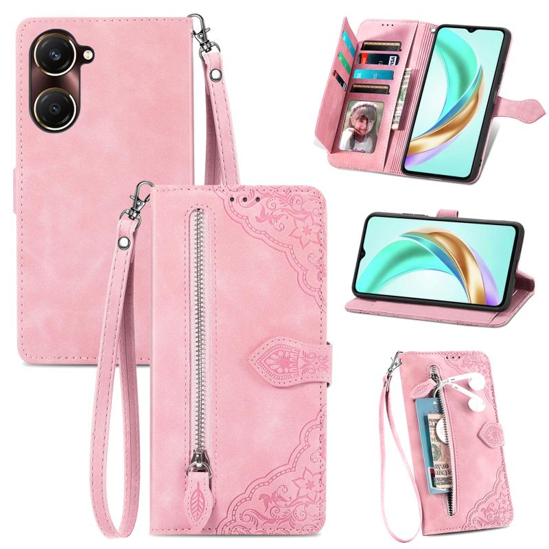 For vivo Y37 Embossed Flower Zipper Leather Phone Case(Pink)