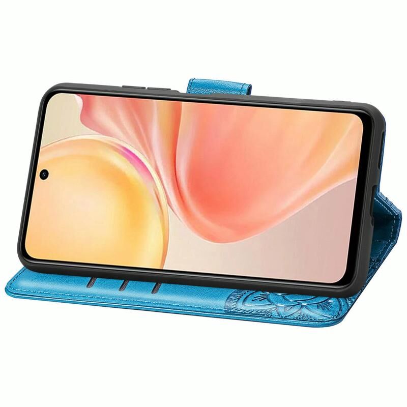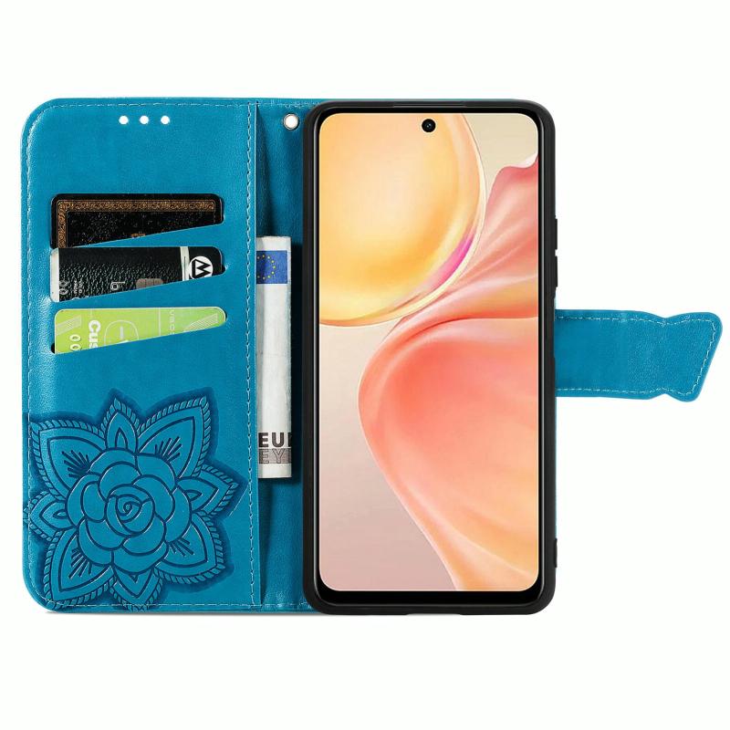 Θήκη δερμάτινη με ανάγλυφο σχέδιο πεταλούδας και λουλουδιών για vivo Y37 Pro (Μπλε)