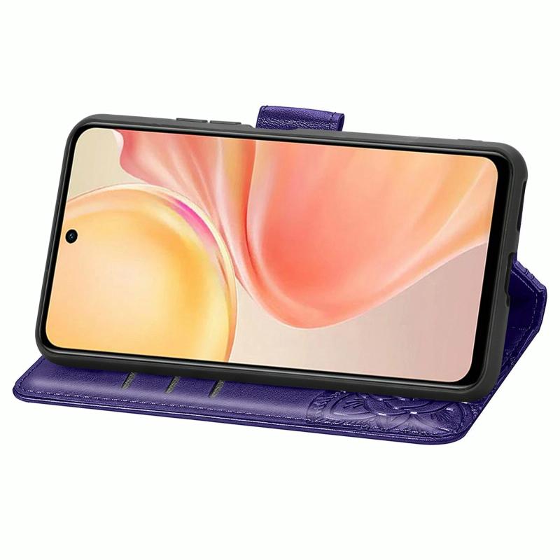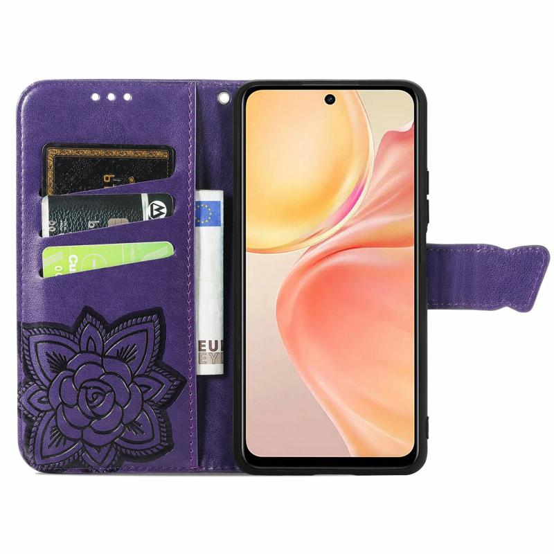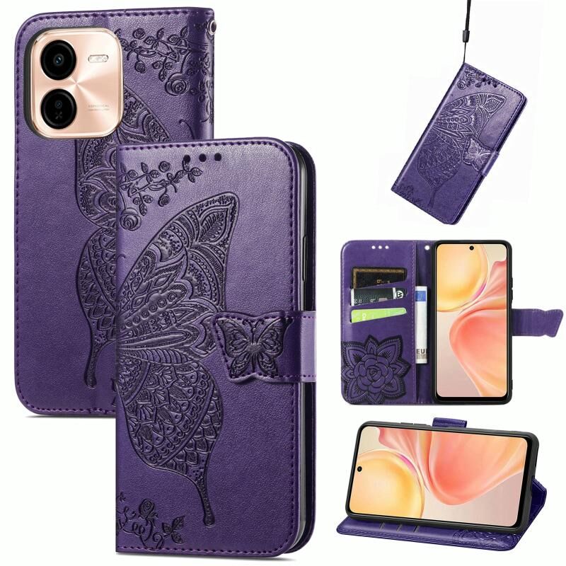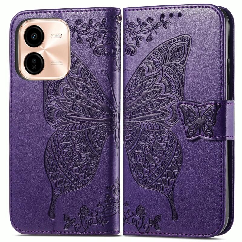 Θήκη δερμάτινη με ανάγλυφο σχέδιο πεταλούδας και λουλουδιών για vivo Y37 Pro (Μωβ)
