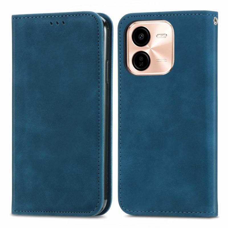 Για το vivo Y37 Pro Retro δέρμα αίσθηση μαγνητική Flip δέρμα τηλέφωνο υπόθεση (Μπλε)