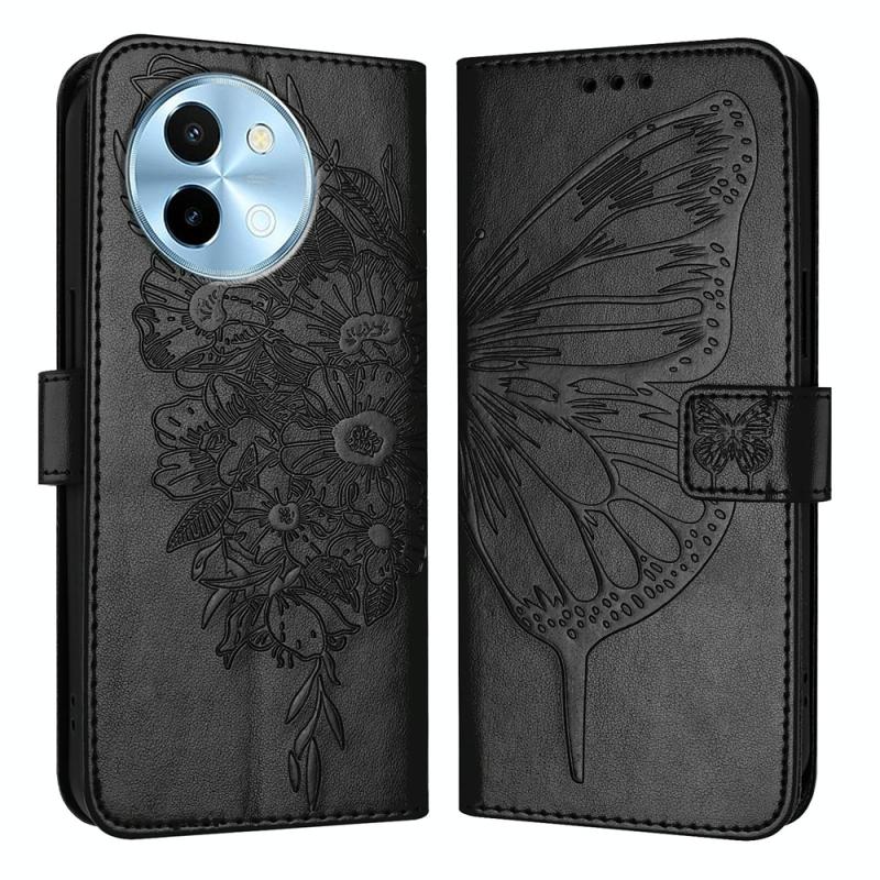 For vivo Y38 5G Embossed Butterfly Leather Phone Case(Black)