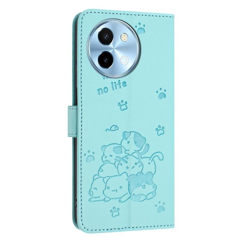 Θήκη δέρματος τηλεφώνου με ανάγλυφο γατάκι και κορδόνι για vivo Y38 5G Global (Μέντας πράσινο)