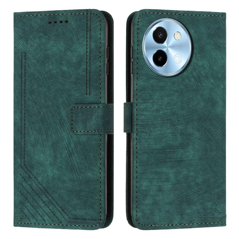 For vivo Y38 5G Skin Feel Stripe Pattern Leather Phone Case with Lanyard(Green)