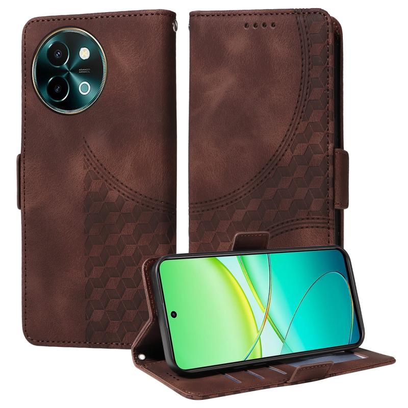 For vivo Y38 5G / T3x 5G Global Embossed Rhombus Starry Leather Phone Case(Brown)