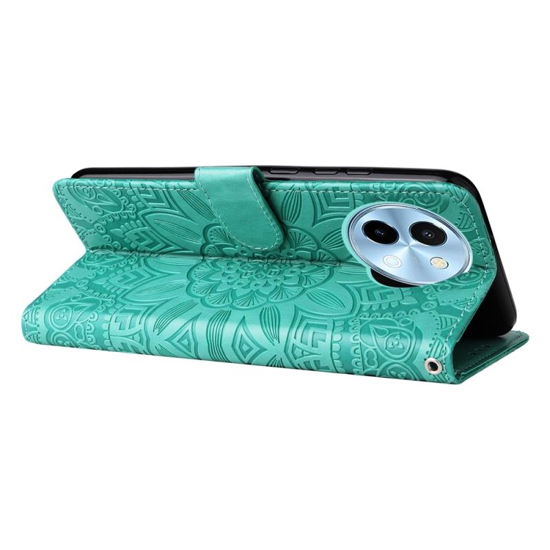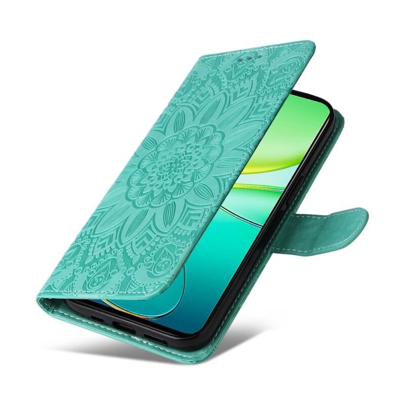 Θήκη τηλεφώνου από δέρμα με ανάγλυφο ηλίανθο για vivo Y38 5G / T3x 5G (Κόκκινο)