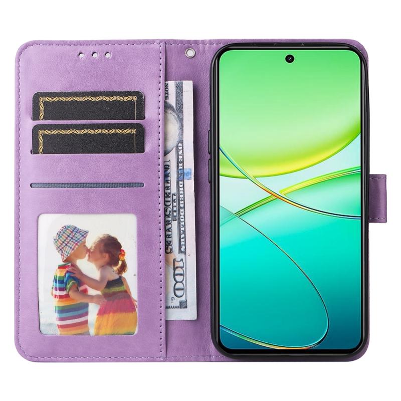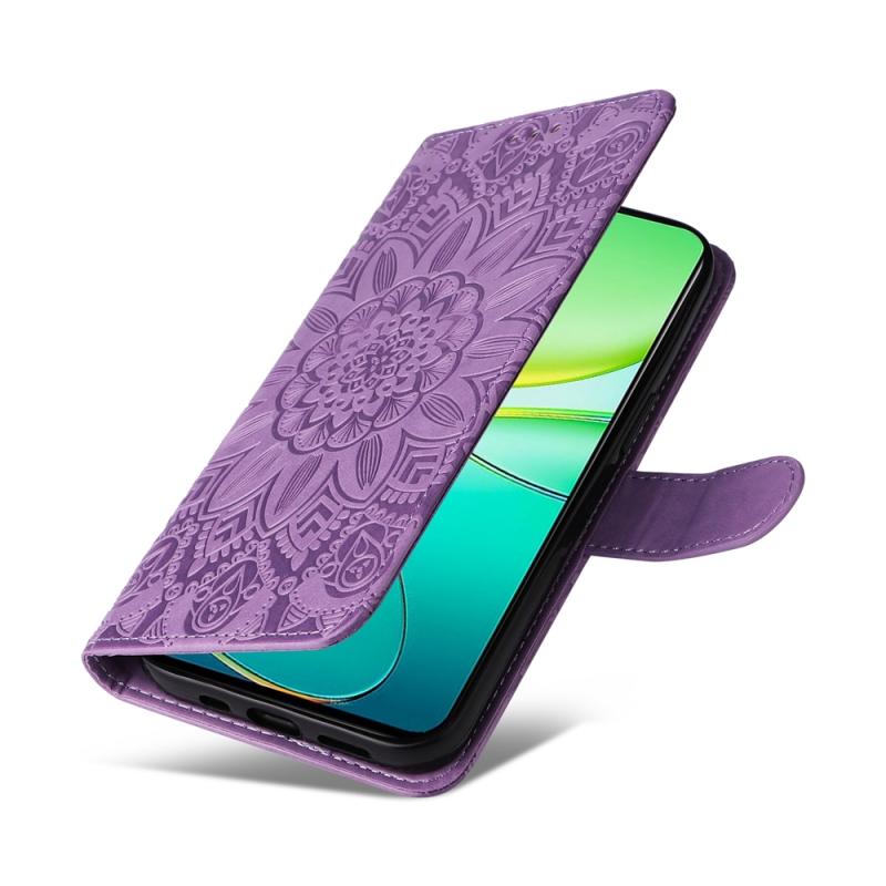 Θήκη τηλεφώνου από δέρμα με ανάγλυφο ηλίανθο για vivo Y38 5G / T3x 5G (Κόκκινο)