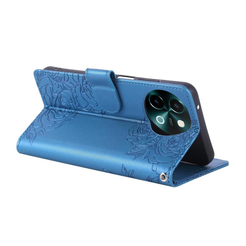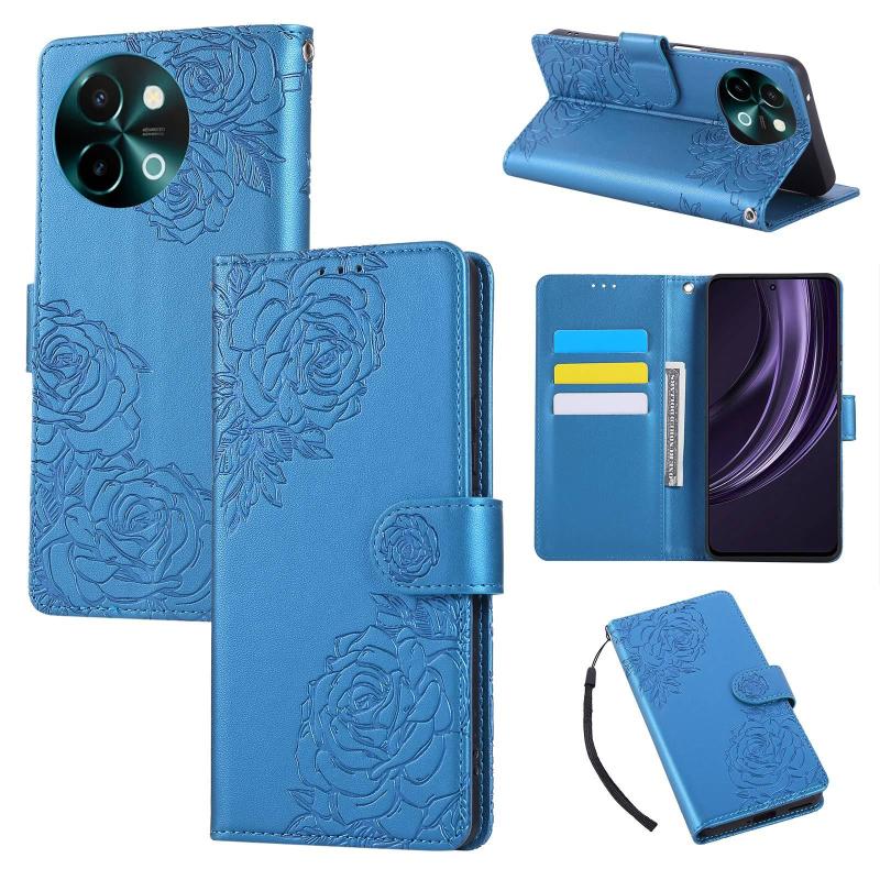 For vivo Y38 5G / T3X 5G Global Rose Flower Embossed 3-Card Slots Leather Phone Case(Blue)