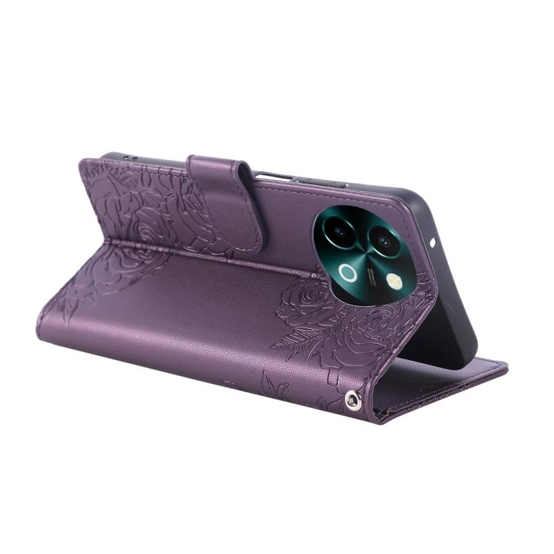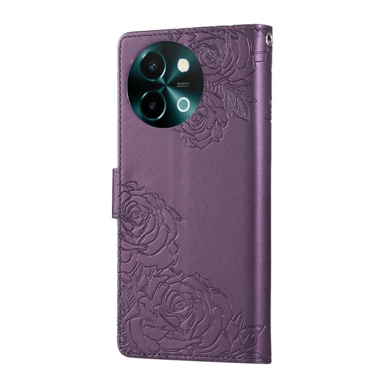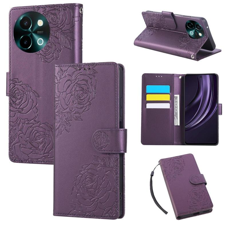 For vivo Y38 5G / T3X 5G Global Rose Flower Embossed 3-Card Slots Leather Phone Case(Deep Purple)