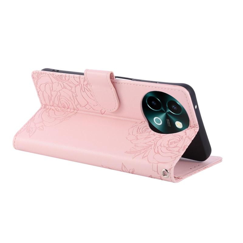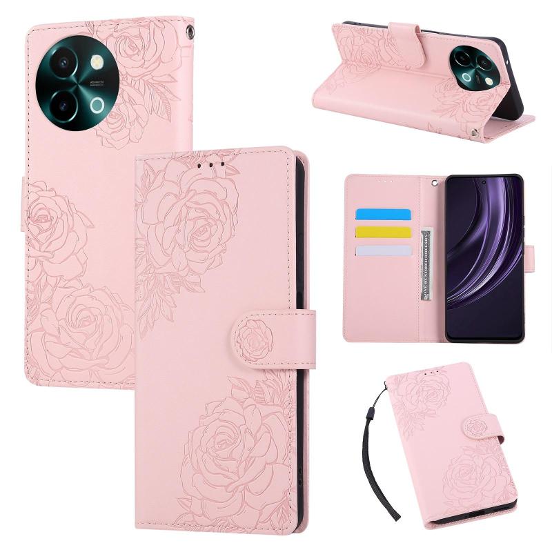 For vivo Y38 5G / T3X 5G Global Rose Flower Embossed 3-Card Slots Leather Phone Case(Pink)