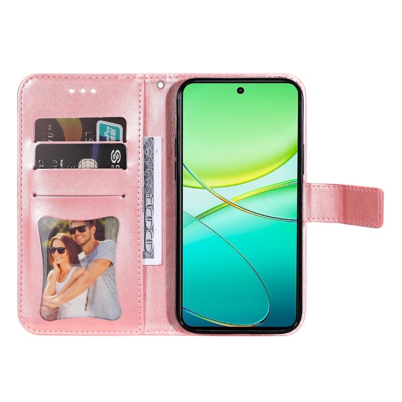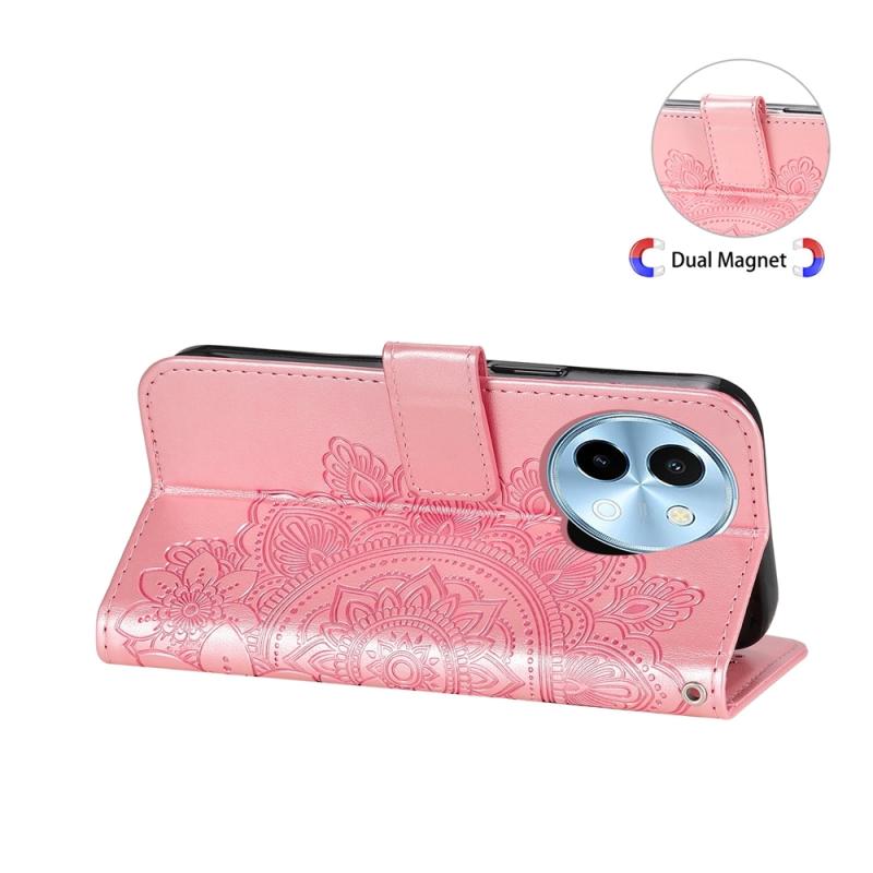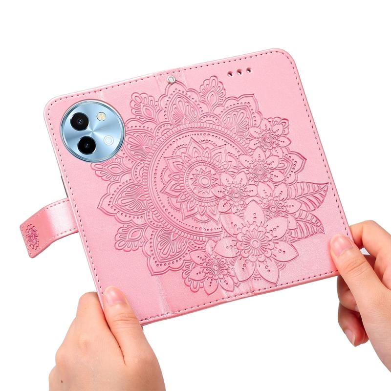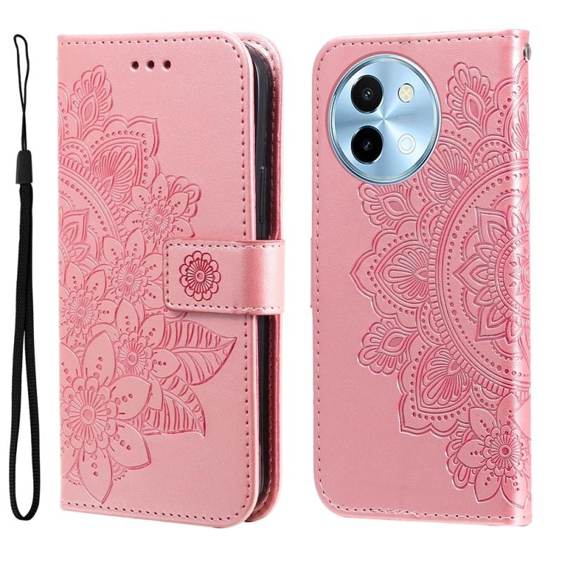 Θήκη τηλεφώνου από δέρμα με ανάγλυφα επτά πέταλα λουλουδιών για vivo Y38 5G / T3x 5G Global (Ανοιχτό Μωβ)