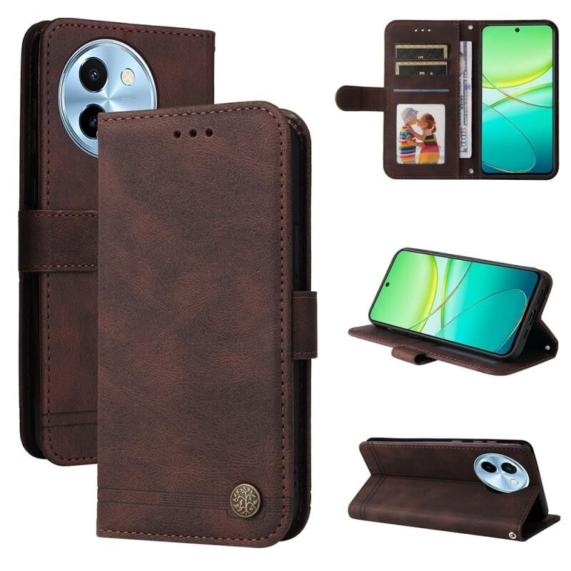 Θήκη τηλεφώνου από δέρμα με μεταλλικά κουμπιά και σχέδιο Δέντρου της Ζωής για vivo Y38 5G / T3x 5G (Κόκκινο)