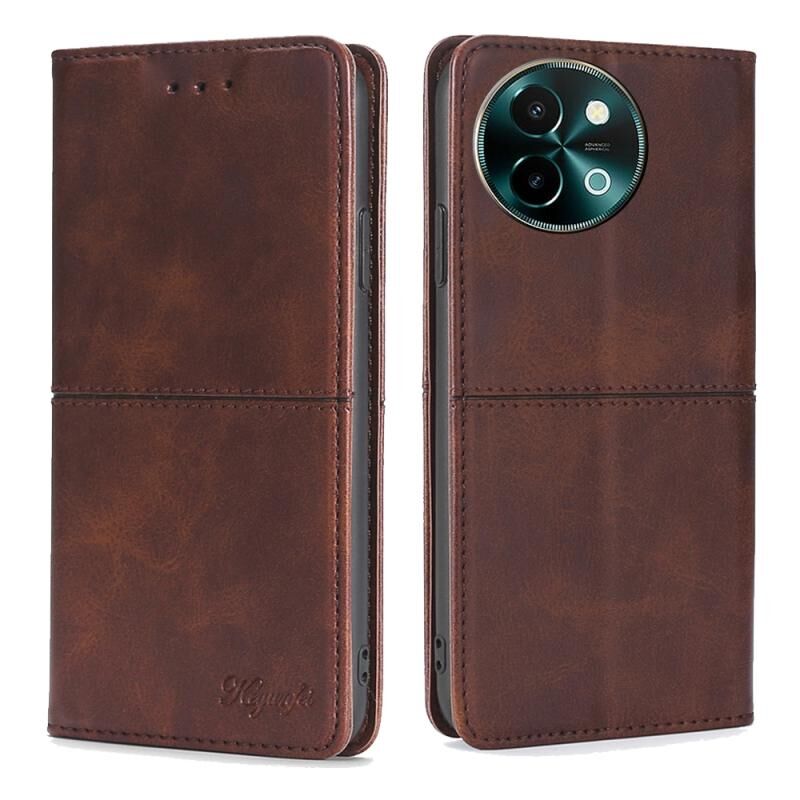 Για vivo Y38 5G / T3x Παγκόσμια υπόθεση τηλεφώνου από δέρμα αγελάδας με υφή μαγνητική (σκούρο καφέ)