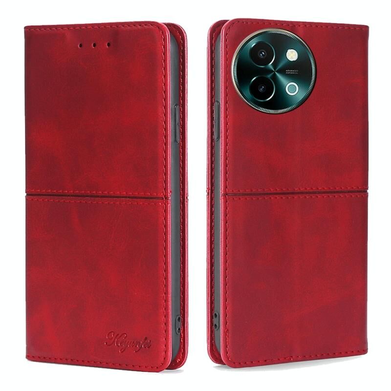 Για vivo Y38 5G / T3x Παγκόσμια υπόθεση τηλεφώνου από δέρμα αγελάδας με υφή μαγνητική (κόκκινο)