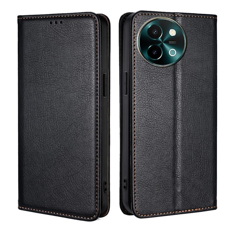 Θήκη τηλεφώνου από μαγνητικό δέρμα με γυαλιστερό λάδι και συμπαγές χρώμα για vivo Y38 5G / T3x Global (Μαύρο)