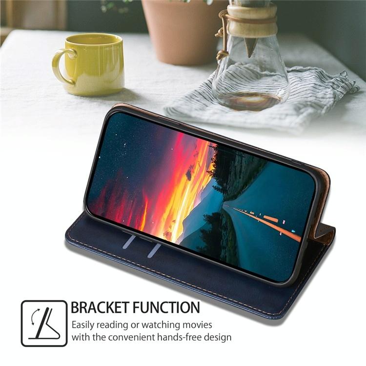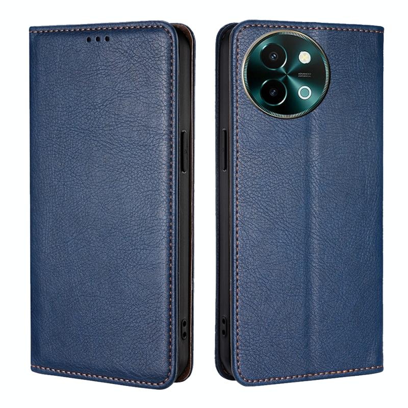 Θήκη τηλεφώνου από μαγνητικό δέρμα με γυαλιστερό λάδι και συμπαγές χρώμα για vivo Y38 5G / T3x Global (Μπλε)