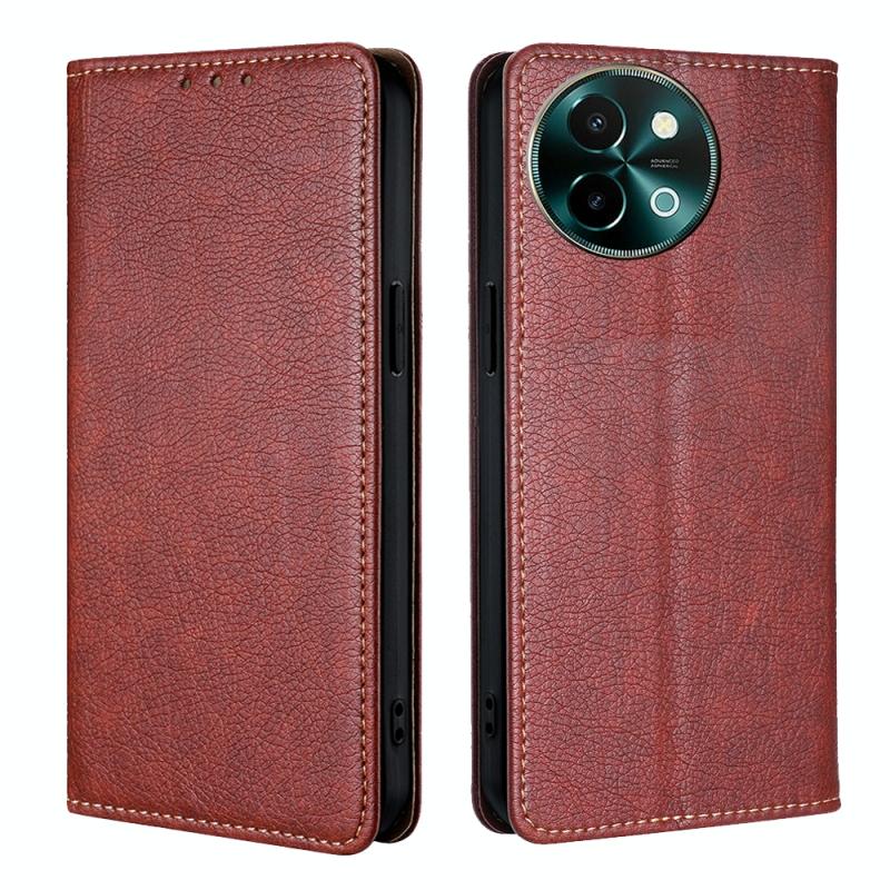 Θήκη τηλεφώνου από μαγνητικό δέρμα με γυαλιστερό λάδι και συμπαγές χρώμα για vivo Y38 5G / T3x Global (Καφέ)