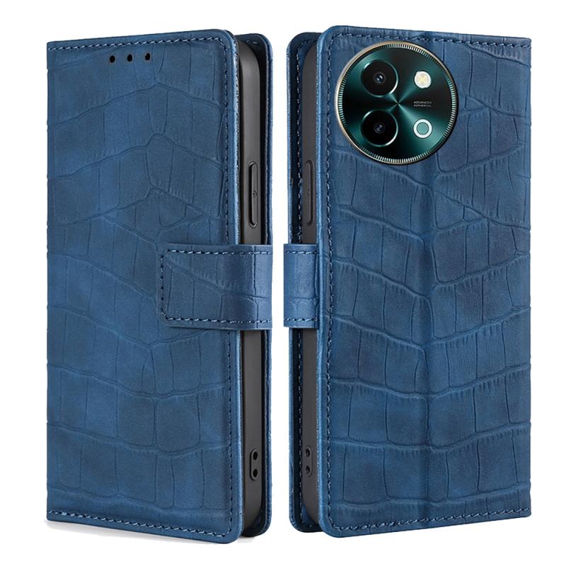 For vivo Y38 5G / T3x Global Skin Feel Crocodile Magnetic Clasp Leather Phone Case(Blue)