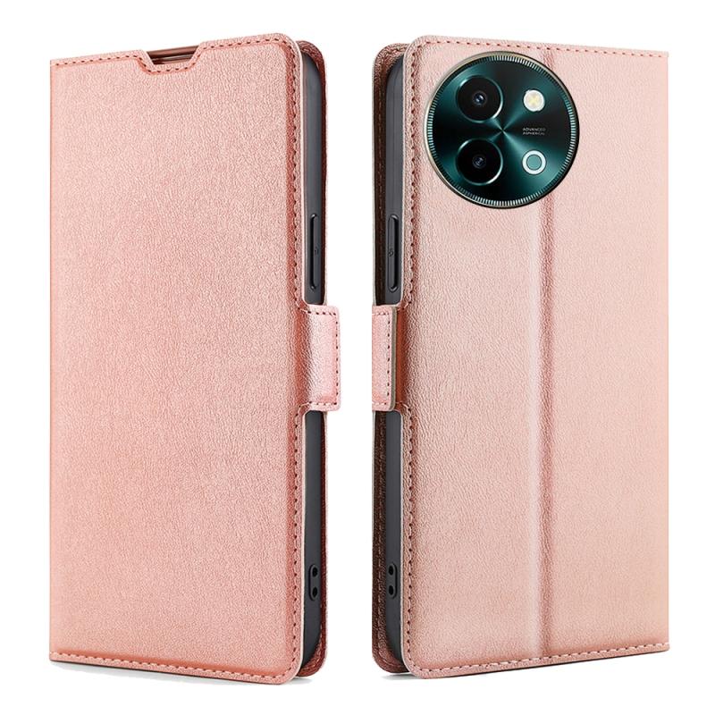 Θήκη τηλεφώνου δέρματος οριζόντιας αναδίπλωσης με λεπτό σχεδιασμό και πλευρική αγκράφα για vivo Y38 5G / T3x Global (Ροζ χρυσός)
