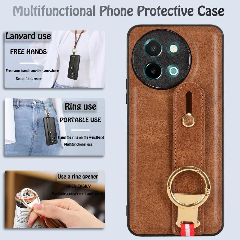 Για vivo Y38 5G / Y200i 5G Wristband δέρμα πίσω υπόθεση τηλεφώνου (καφέ)